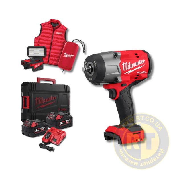 Гайковерт аккумуляторный бесщёточный MILWAUKEE 1/2" (2034 Нм) M18 FHIWF2F12MC-502X жилетка + фонарь
