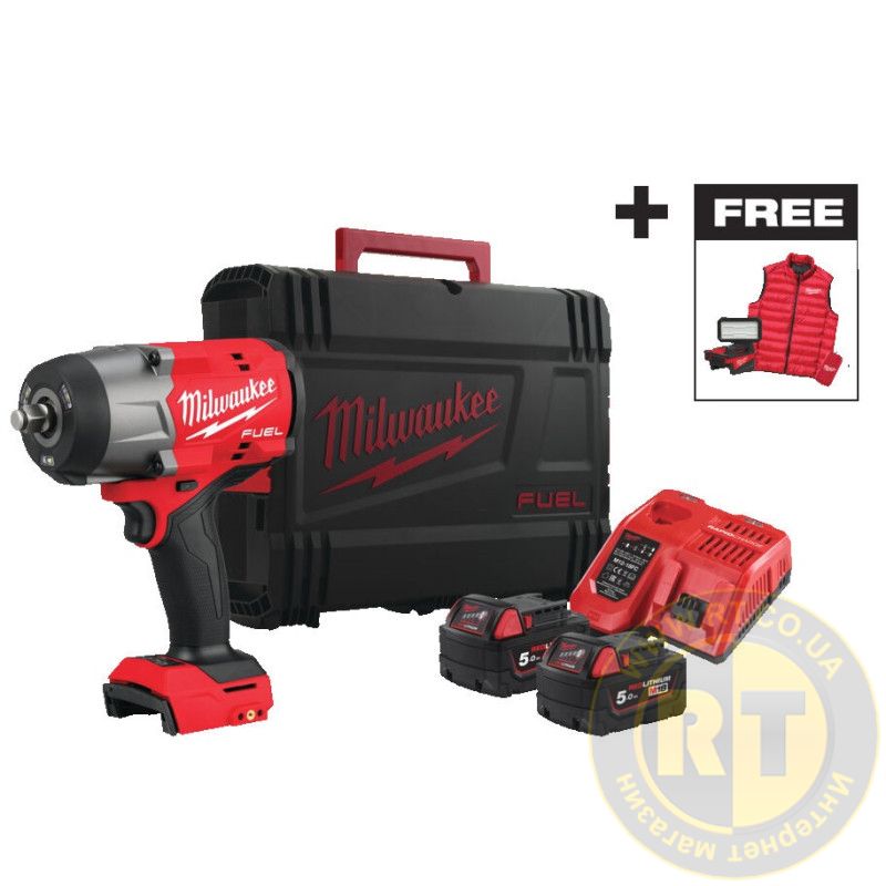 Гайковерт аккумуляторный бесщёточный MILWAUKEE 1/2" (2034 Нм) M18 FHIWF2F12MC-502X жилетка + фонарь