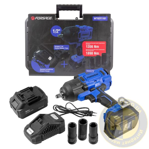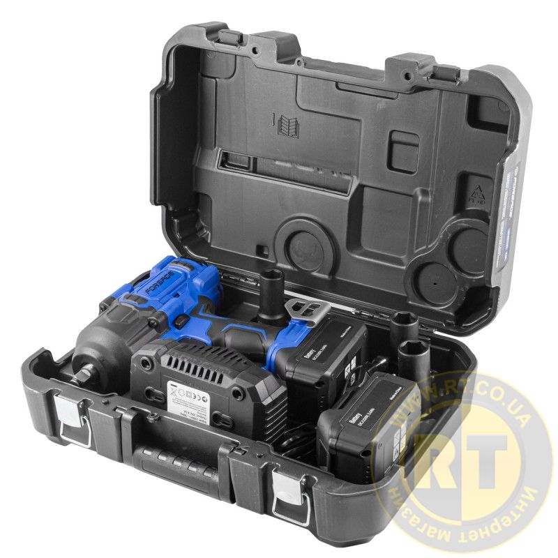 Гайковерт ударний акумуляторний 1/2"+набір головок ударних глиб. 17,19,21мм(2 БАТАРЕЇ,20V,5.0AH LI-ION,1550об/хв,3 реж.зусилля:130,400,1356Нм),в кейсі FORSAGE ROCKFORCE F-WT02F1161