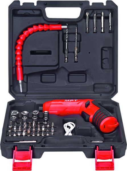 Отвертка аккумуляторная поворотная 4V Li-ion 1.5 А·ч 250 об/мин 3.5 Н·м реверс USB кейс аксессуары 47 шт MASTERTOOL MCSD4006.3