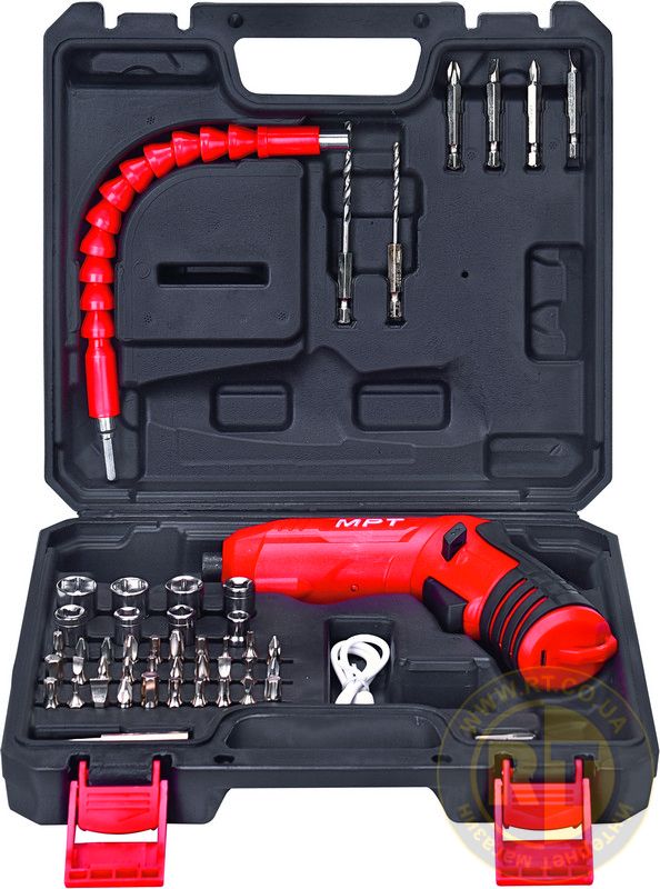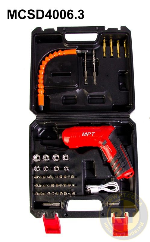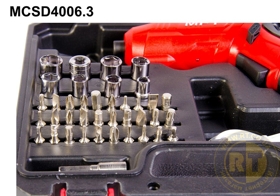 Отвертка аккумуляторная поворотная 4V Li-ion 1.5 А·ч 250 об/мин 3.5 Н·м реверс USB кейс аксессуары 47 шт MASTERTOOL MCSD4006.3