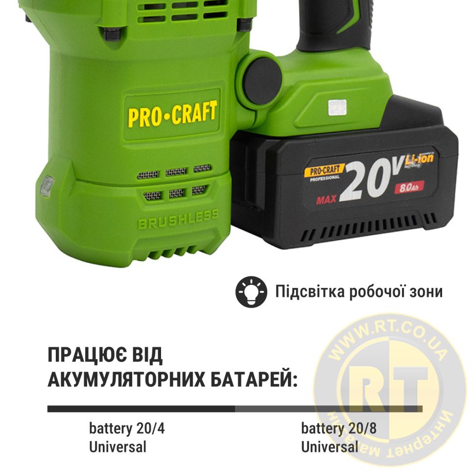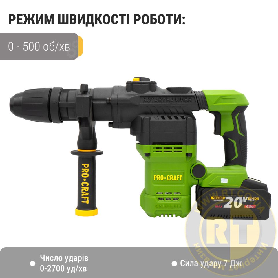 Аккумуляторный перфоратор Procraft PHA50 Кейс (с 1 акб и ЗП) 030050