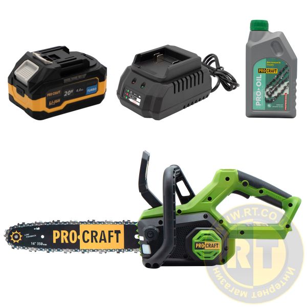 Аккумуляторная цепная пила Procraft PKA60 + 1 акб 4Ач Turbo + ЗУ charger20/1 + Масло для цепи 1л 382424