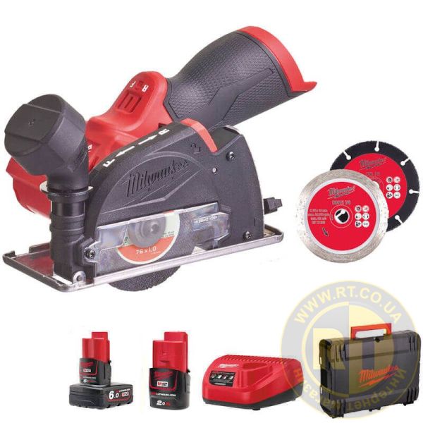 Пила дисковая универсальная аккумуляторная бесщёточная MILWAUKEE M12 FCOT-622X, Ø76 (ЗУ+2акк.+кейс)