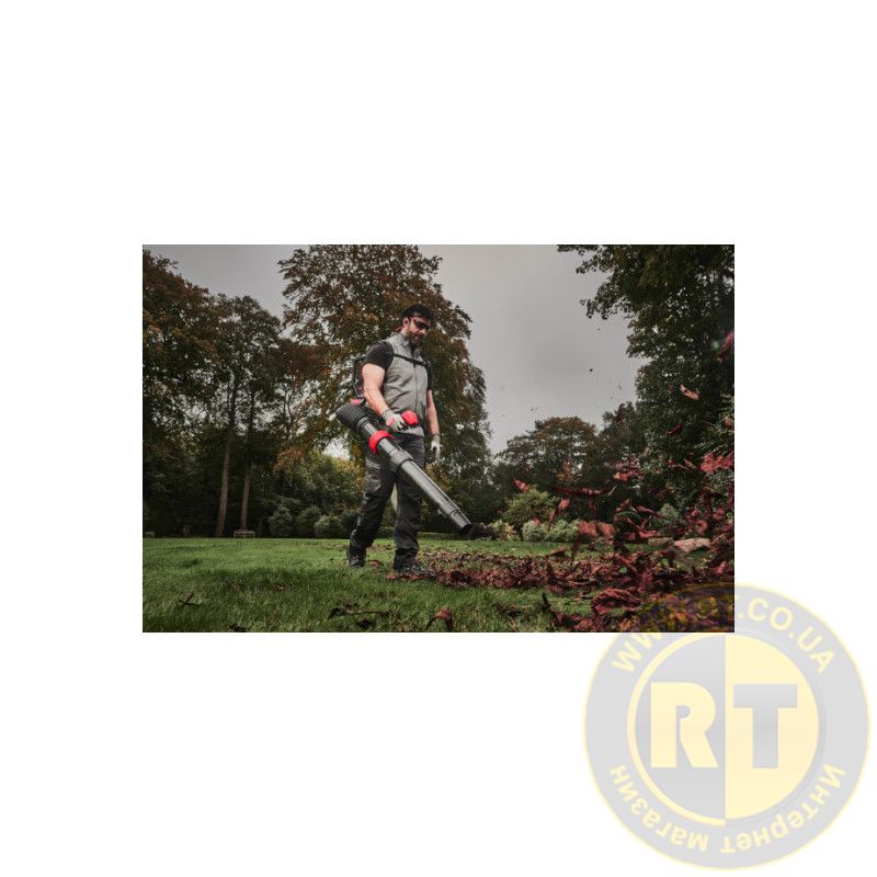 Воздуходувка для рюкзака на две батареи 18 В с мягкой регулируемой спинкой и ремнями для дополнительного комфорта