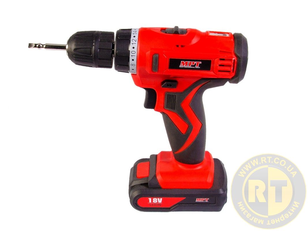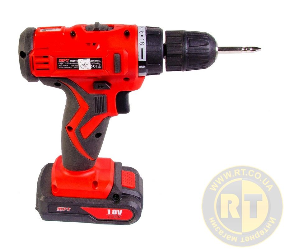 Дрель-шуруповерт аккумуляторная 18V Li-ion 1.3 А·ч 2 скор 0-400/1450 об/мин 10 мм 2 АКБ кейс MASTERTOOL MCDT1823.A2
