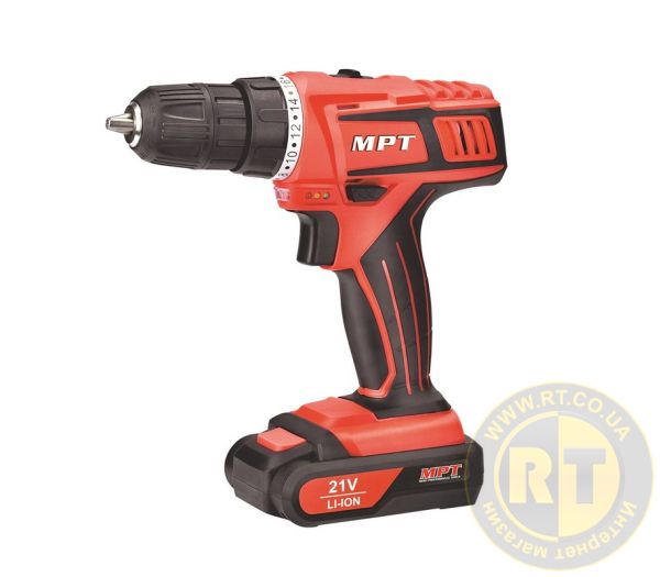 Дрель-шуруповерт аккумуляторная 21V Li-ion 1.5 А·ч 2 скор 0-400/1450 об/мин 10 мм 2 АКБ кейс MASTERTOOL MCDT2126.B2