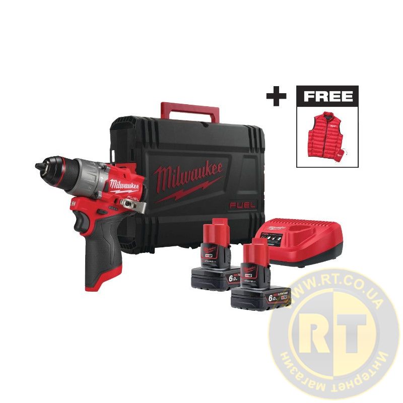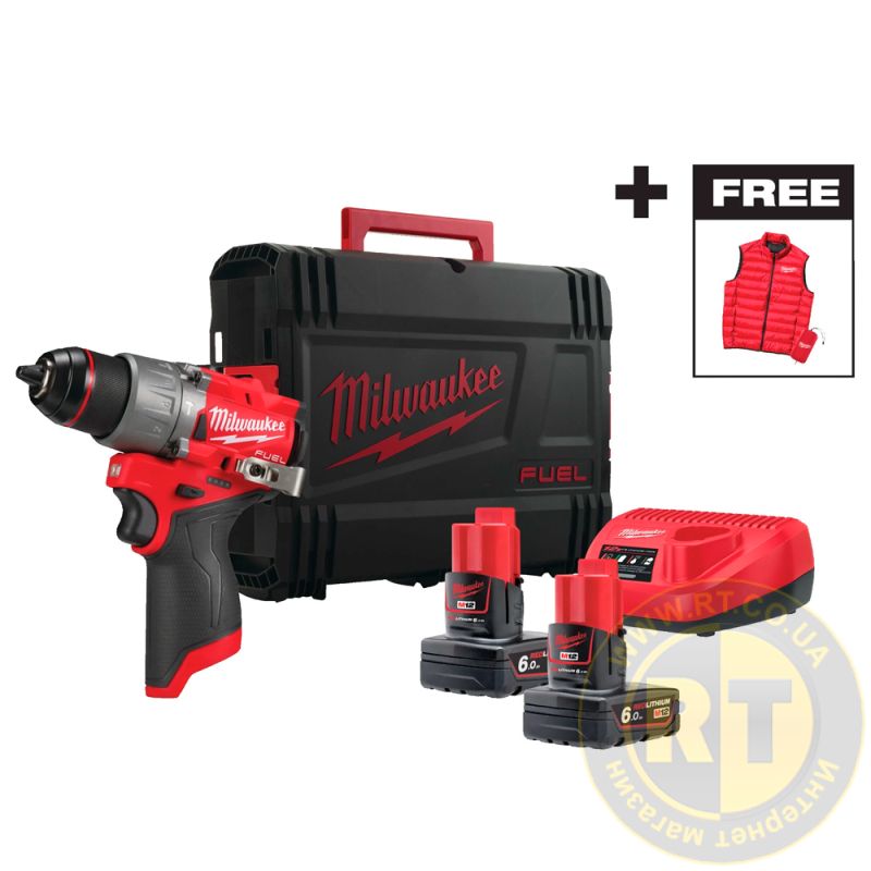 Дрель-шуруповёрт аккумуляторная бесщёточная ударная MILWAUKEE M12 FPD2MC-602X (45 Нм)+ жилетка