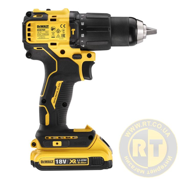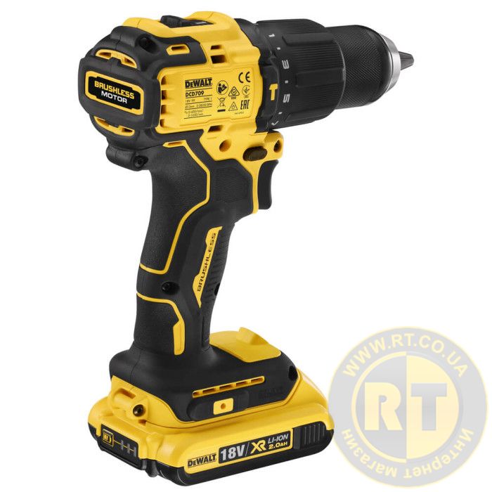 Бесщеточная ударная дрель-шуруповерт аккумуляторная в кейсе с 2-мя аккумуляторами DeWALT DCD709D2T