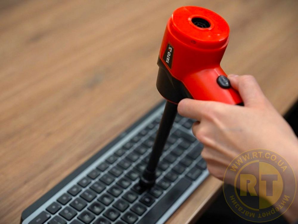 Он позволяет легко очищать труднодоступные углы, клавиатуры или салоны автомобилей, а также надувать кемпинговые матрасы или мячи с помощью дополнительной насадки.
