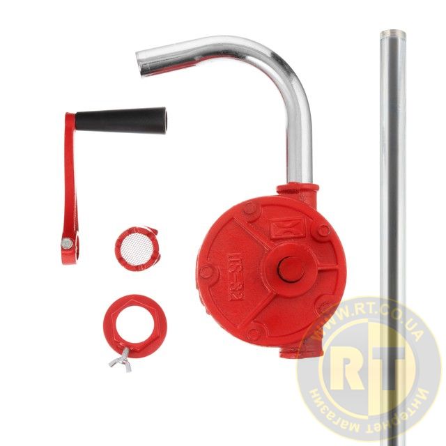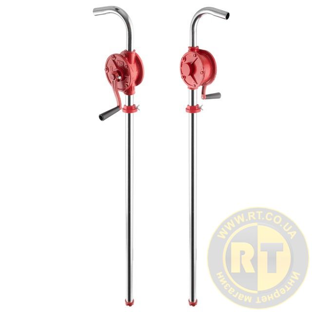Ручной роторный насос применяется для перекачивания различных горюче-смазочных материалов. В конструкции предусмотрена телескопическая труба для выкачки из бочек, глубоких емкостей и т.п. Используется для скачивания трансмиссионных, моторных масел и маслянистых жидкостей средней вязкости.