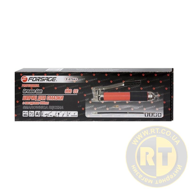 Код товара: 19332, Состав: Шприц для нагнетания густой смазки ручной "Profi" 800мл в комплекте с жестким и гибким наконечниками Forsage F-07043