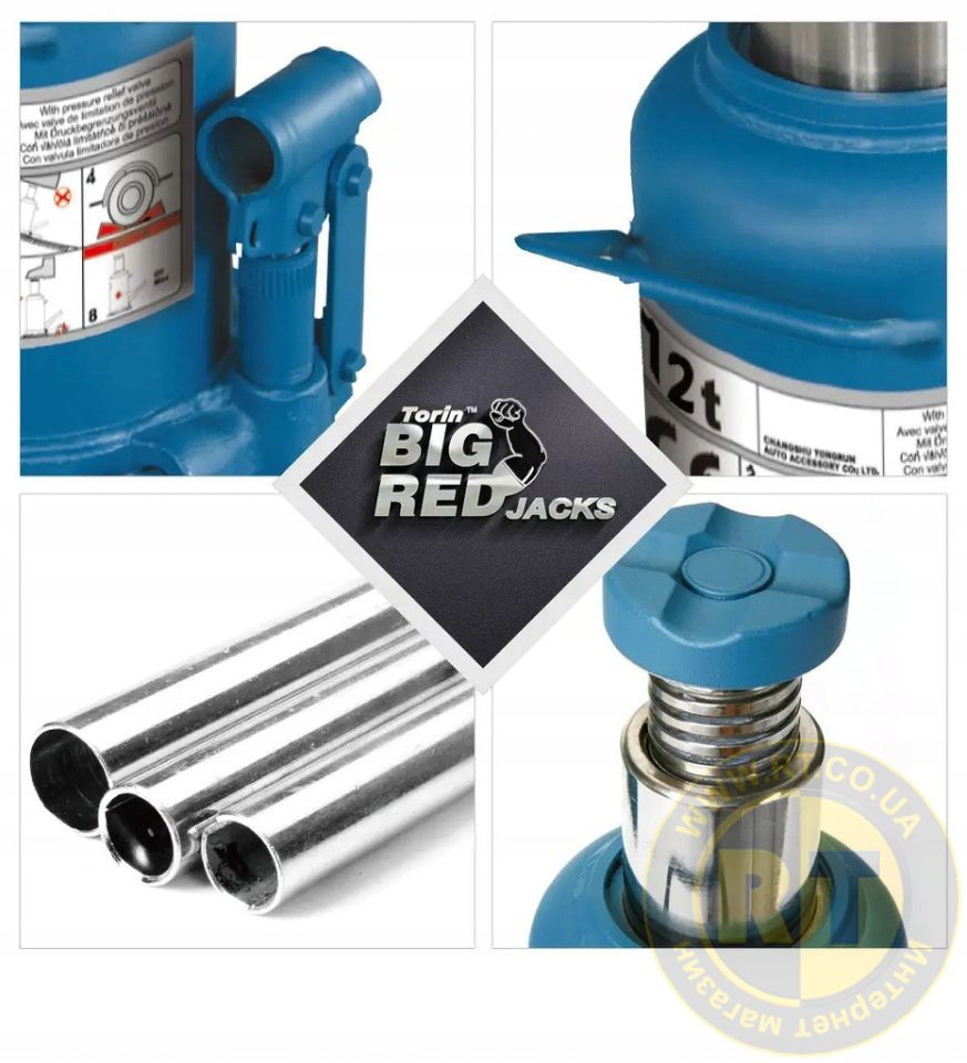 Домкрат 10 тонн производства TORIN - это бутылочный профессиональный двухштоковый домкрат гидравлического типа. Эта серия профессиональных домкратом используется для поднятия транспортных средств весом до 10 тонн при выполнении ремонтных и монтажных работ. В производстве этого оборудования используется закалённая сталь, что является результатом высокой прочности. Благодаря рельефной поверхности домкрата достигается надёжное соприкосновение с поверхностью груза. К достоинству профессионального домкрата можно присвоить такие характеристики, как устойчивость, жесткость конструкции, точность торможения, плавность хода, компактность большая грузоподъемность, небольшое усилие на приводной рукоятке. Благодаря использованию высококачественных материалов бутылочные домкраты профессиональной серии отличаются продолжительным сроком службы и надежностью. Качественное выполнение работы в обслуживании и ремонте обеспечит комфортная область подъёма