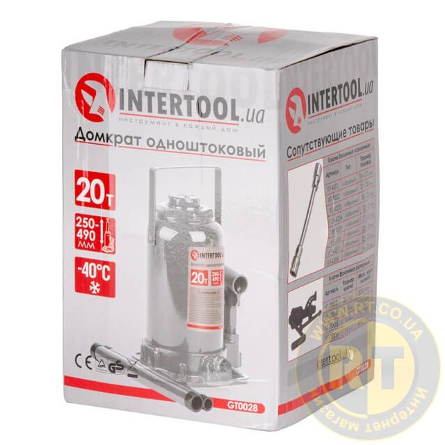 Домкрат "столбик" одноштоковый 20т, 242-452 мм INTERTOOL GT0028