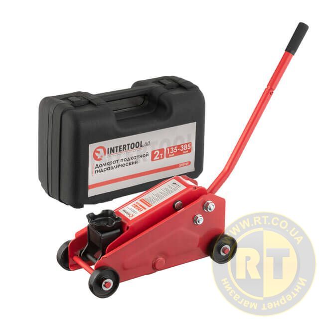 Домкрат гидравлический подкатной 2т высота подъема 135-385мм в кейсе INTERTOOL GT0109