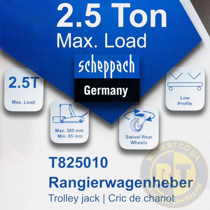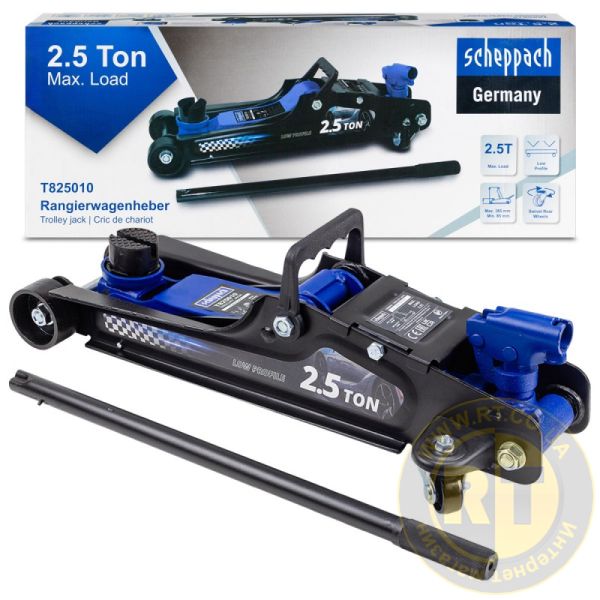 Домкрат подкатной 2,5т (85-385мм) гидравлический низкопрофильный с усиленным корпусом и поворотной ручкой 360° SCHEPPACH FORCEKRAFT SCH-T825010