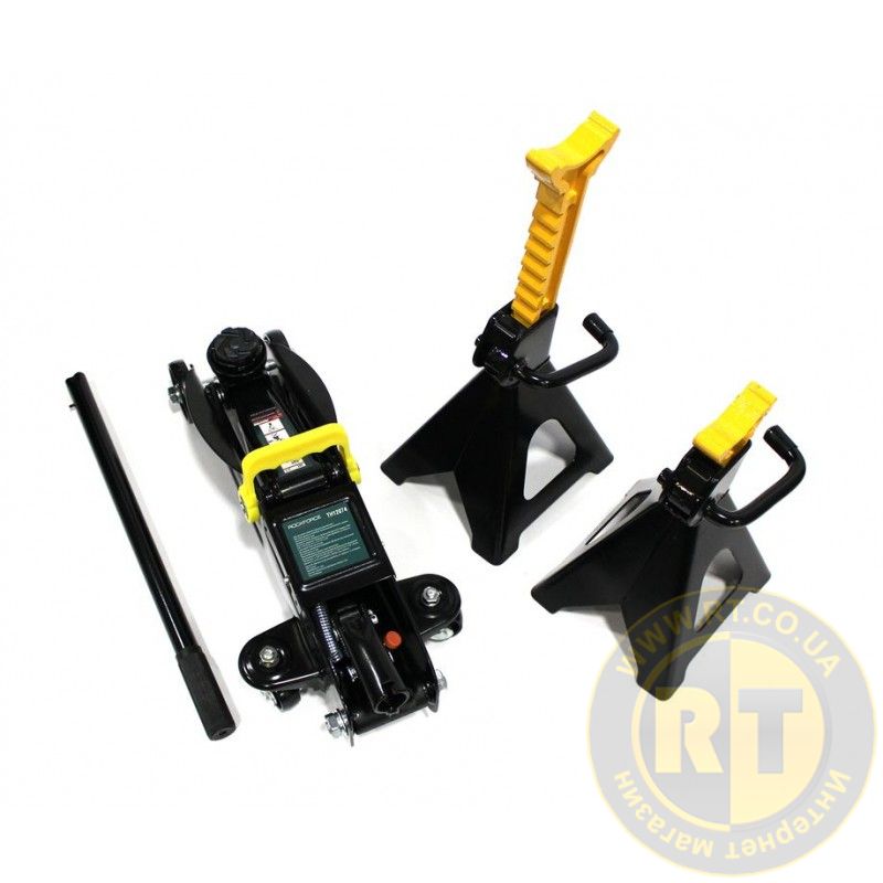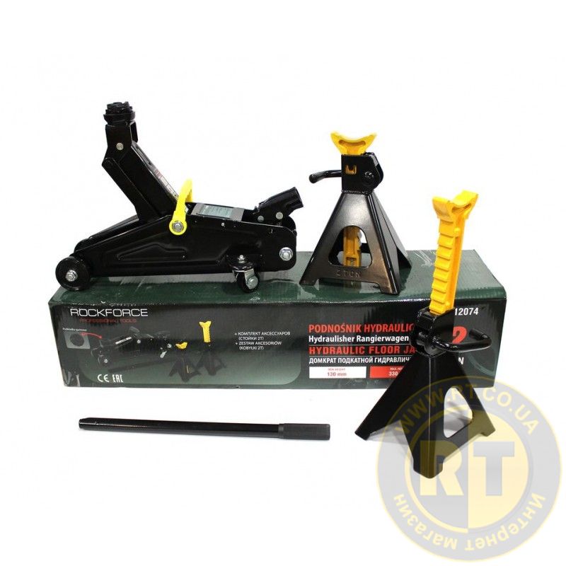 Домкрат подкатной 2т (130-330мм) с комплектом ремонтных подставок + резиновая накладка RockForce PATRON RF-TH12074
