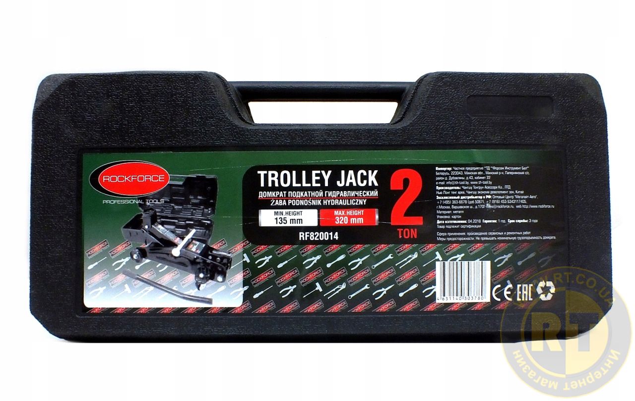 Домкрат подкатной гидравлический с усиленным корпусом "Profi" 2т(дополнительные ребра жесткости, h min 135мм.h max 320мм), в кейсе ROCKFORCE RF820014 FORSAGE RF-820014