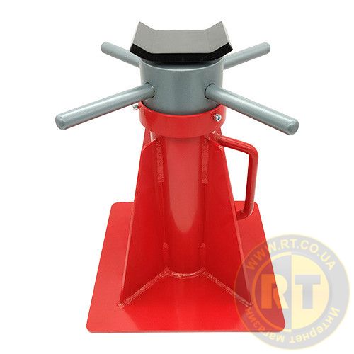 Сварной конструкции с габаритной гладкой подошвой не страшны неровности полов в гараже. При работе на улице, подставка не уйдет в грунт за счет увеличенной площади конструкции. Удобная пятка для подхвата агрегата или кузова автомобиля гарантированно удержит любой допустимый груз.