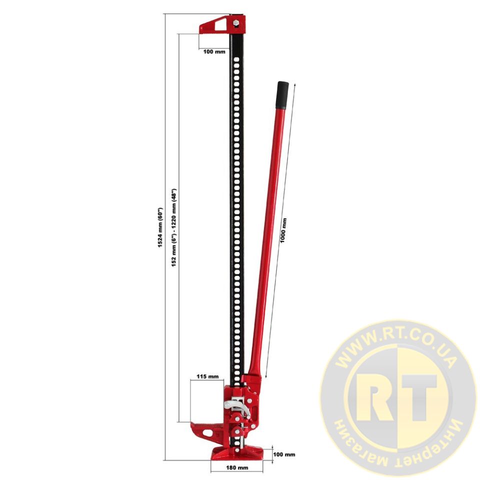 - Универсальный домкрат имеет длину 150 см и может храниться в любом транспортном средстве для экономии места. Подъемник имеет собственный вес 15 кг.