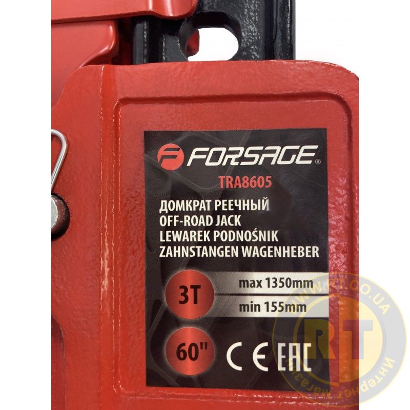 Домкрат реечный 3т 60"(высота подхвата - 155мм, высота подъема - 1350мм) FORSAGE F-TRA8605