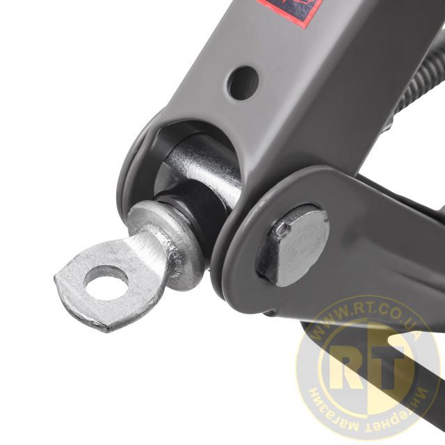Домкрат выполнен из легированной стали — прочного и износостойкого материала, который обеспечивает высокую надёжность и устойчивость при нагрузках. Конструкция с ребрами жесткости гарантирует долговечность, устойчивость к деформации и безопасную эксплуатацию в течение длительного времени.