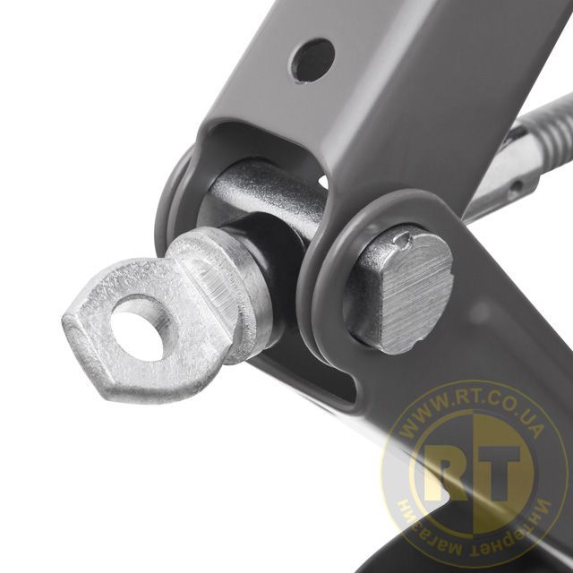 Домкрат «ромб» приводится в действие вручную — ручка подключается к корпусу и вращается, плавно поднимая опорную платформу. Компактные размеры позволяют легко разместить его в багажнике, не занимает лишнего пространства.