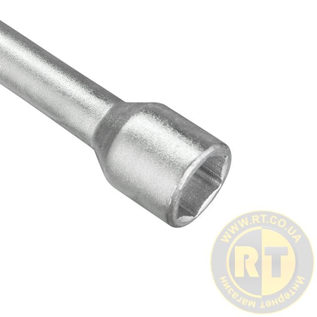 Ключ имеет четыре рабочие головки 17, 19, 21, 22 мм для работы с различными крепежами. Глубокая форма позволяет надежно фиксировать крепеж, без повреждения граней. Длина рычага ключа 406 мм удобна для надежного захвата руками и позволяет прикладывать больше усилий к креплению.