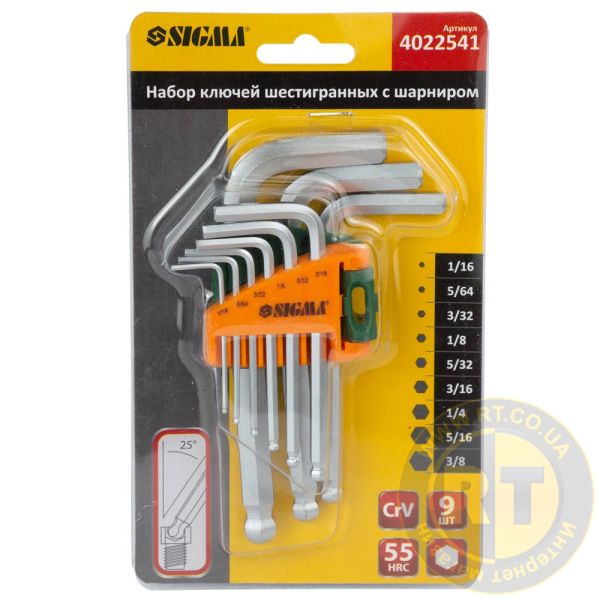 Ключи шестигранные 9шт 1/16-3/8" CrV (короткие) SIGMA (4022541) - набор предназначен для работы с крепежом, оснащенным внутренним шестигранным гнездом. Закругленная форма наконечника позволяет проводить вращения под углом относительно оси винта.