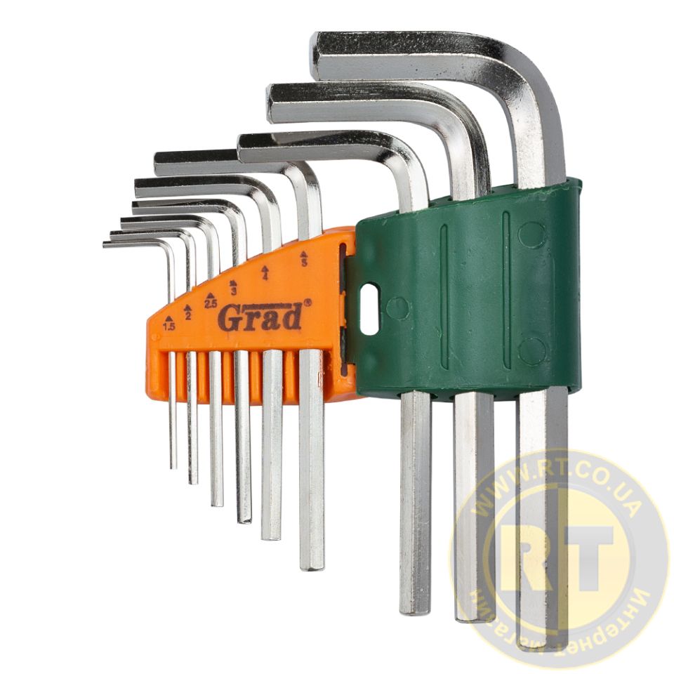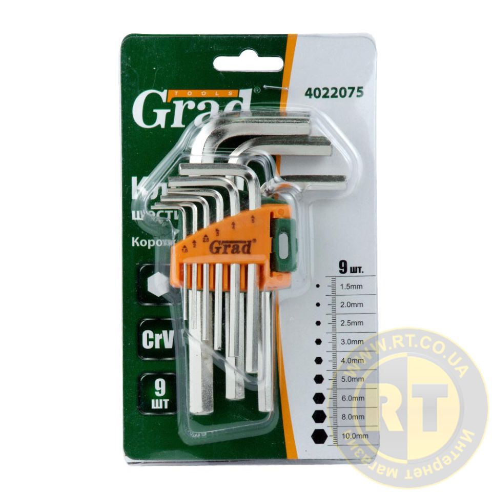 Ключи шестигранные 9шт 1.5-10мм CrV (короткие) GRAD 4022075