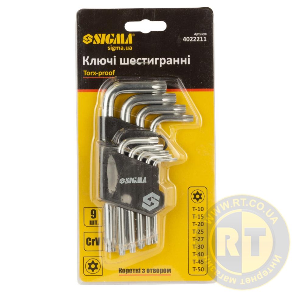 Ключи TORX 9шт T10-T50 мм CrV (короткие с отверстием) SIGMA 4022211