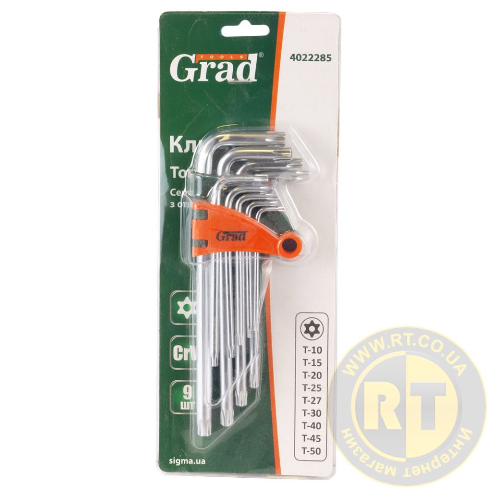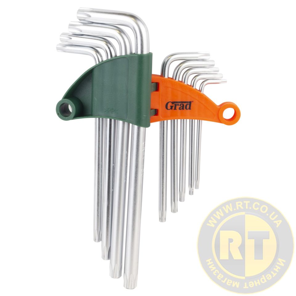 Ключи TORX 9шт T10-T50мм CrV (средние с отвер) GRAD (4022285) предназначены для работы с креплением, оснащенным внутренним гнездом TORX.