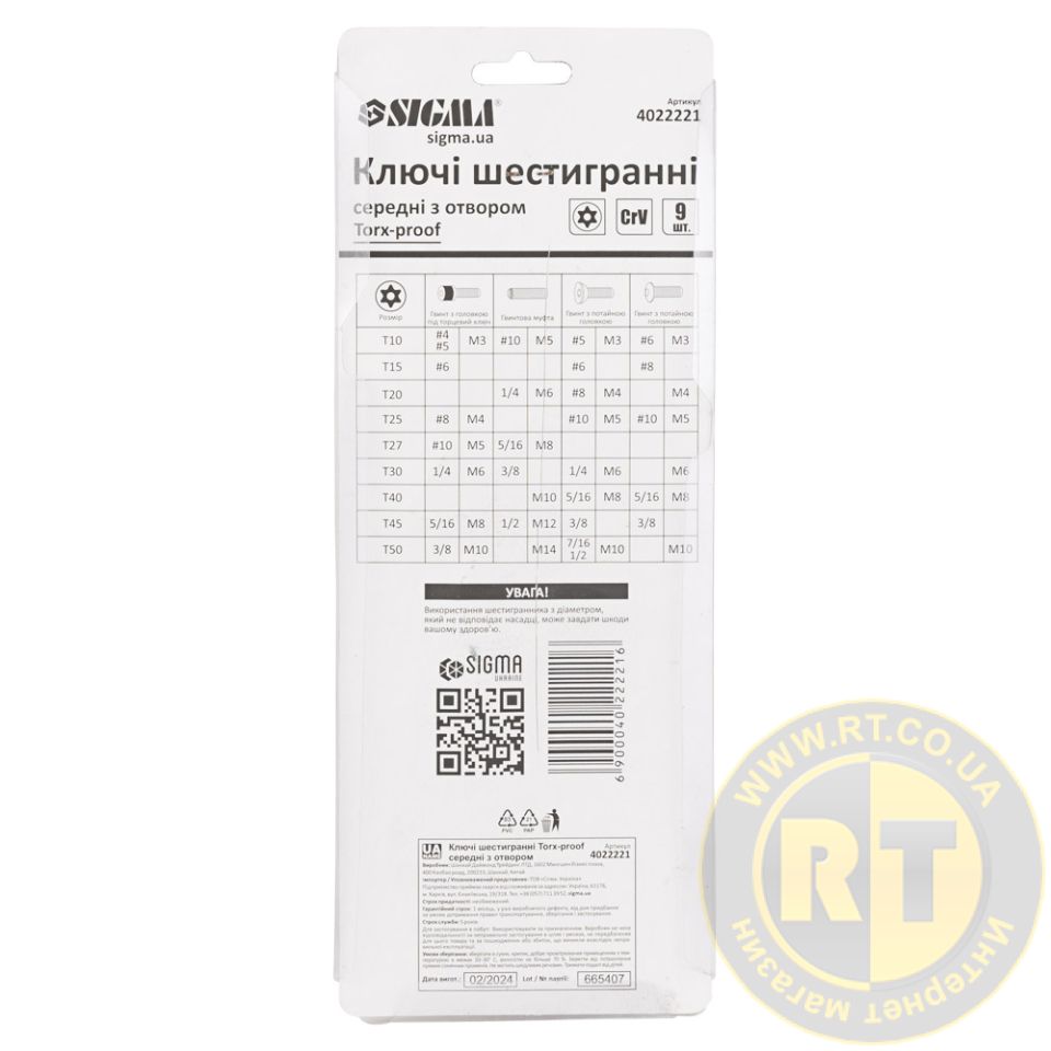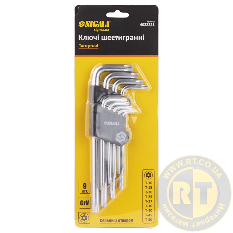 Ключи TORX 9шт T10-T50мм CrV (средние с отверстием) SIGMA 4022221