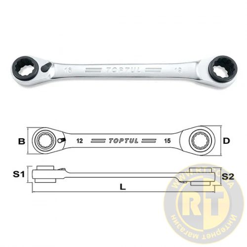 ![]() | Ключ накидной с двойной трещоткой 72 зубца Pro-Series 12x15-14x13мм TOPTUL ABAD1215. Подробнее... | 15 мм | 12 мм | 707грн | |