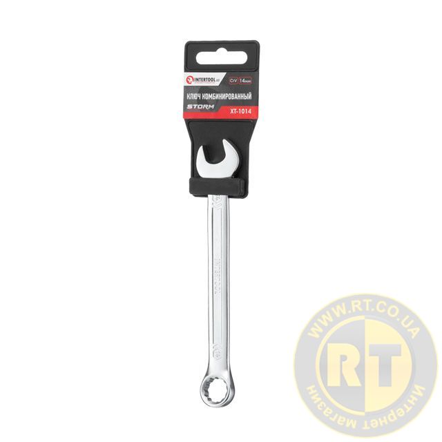 Ключ комбинированный, 14 мм, Cr-V, покрытие: сатин-хром, DIN3113, STORM INTERTOOL XT-1014