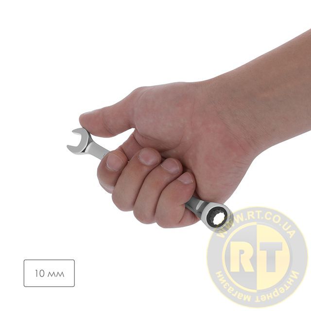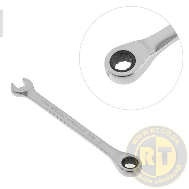 Комбинированный ключ с трещоткой, размером 10 мм предназначен для монтажа и демонтажа резьбовых соединений гаек и болтов.
