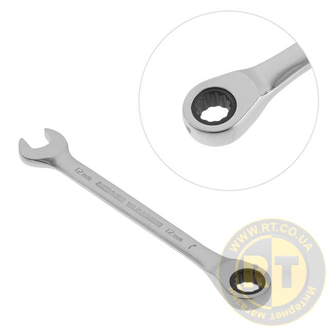 Комбинированный ключ с трещоткой, размером 12 мм предназначен для монтажа и демонтажа резьбовых соединений гаек и болтов.