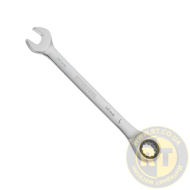 Ключ комбинированный, с трещоткой, 14 мм, Cr-V, профессиональный, DIN3113 INTERTOOL XT-1354
