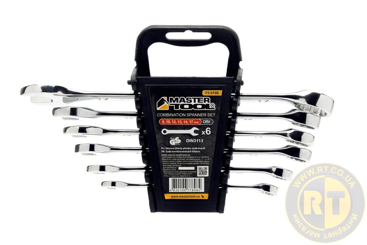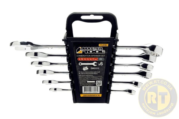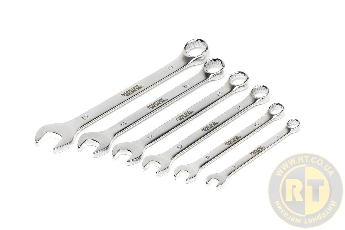 Ключи комбинированные набор 6 шт (8, 10, 12, 13, 14, 17 мм) 31CRV3 SATIN FINISH DIN3113 MASTERTOOL 71-2106