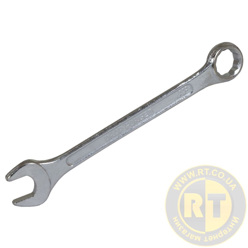 Угол наклона кольцевого зева относительно плоскости ключа в 15 градусов делает монтаж более удобным. Ключ сделан из инструментально углеродистой стали и имеет антикоррозионное хромовое покрытие.