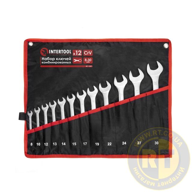 Набор ключей комбинированных, 12 шт., 8-30 мм, Cr-V, чехол INTERTOOL HT-1251