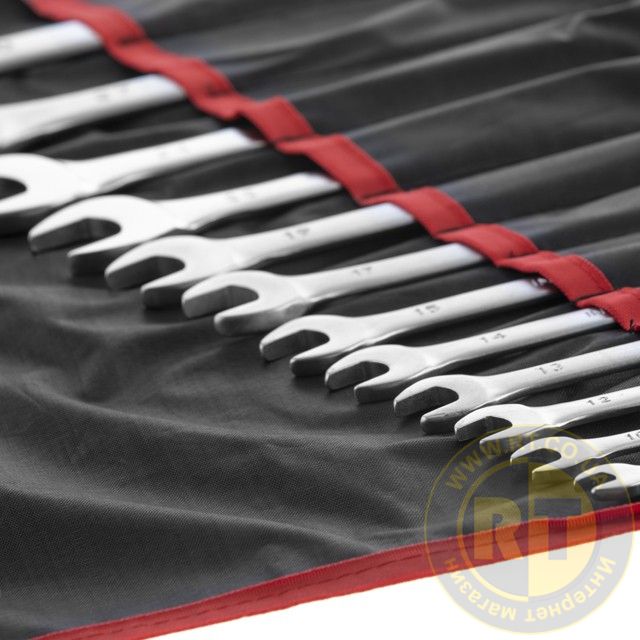 Набор рожково-накидных ключей INTERTOOL HT-1251 с широкой комплектацией: 8, 10, 12, 13, 14, 15, 17, 19, 22, 24, 27, 30 мм, позволит подобрать необходимый размер под любые задачи для монтажа и демонтажа резьбовых соединений гаек и болтов.