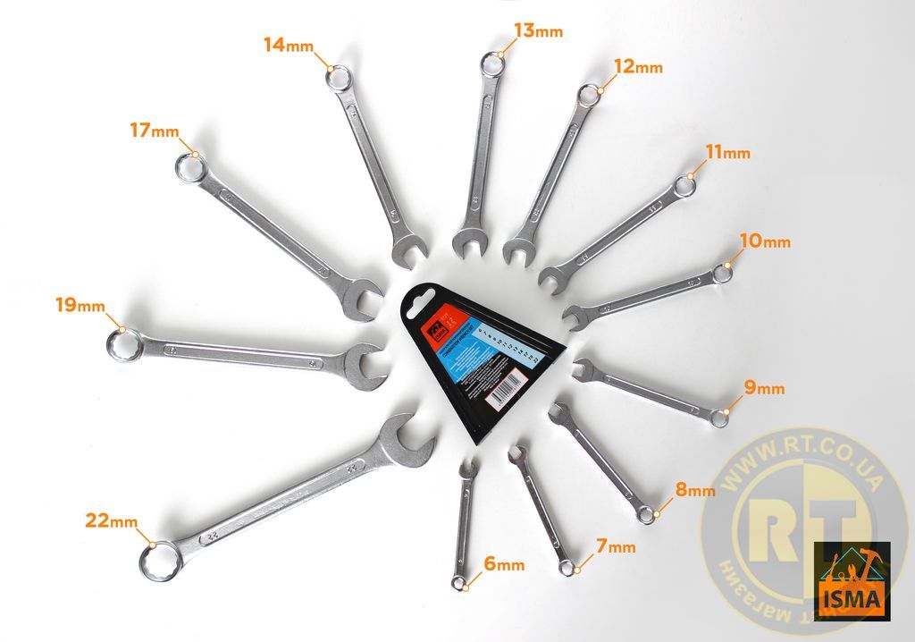 Набор ключей комбинированных 12пр. (6-14, 17, 19, 22мм) 5123 ISMA IS-5123