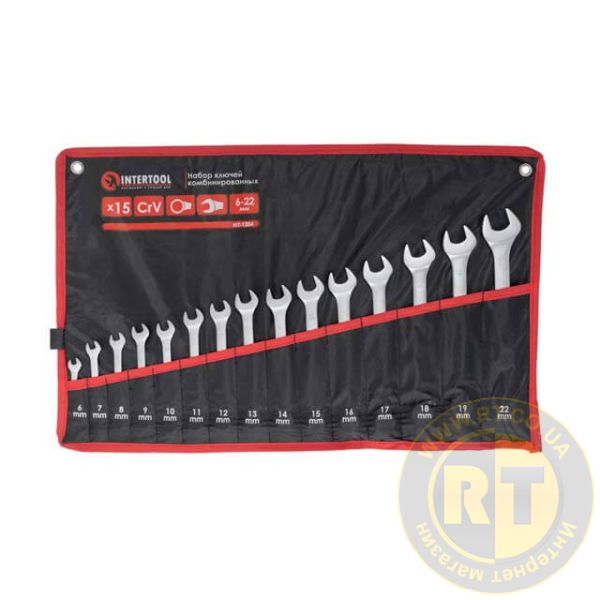 Набор ключей комбинированных, 15 шт., 6-19, 22 мм, Cr-V, чехол INTERTOOL HT-1204