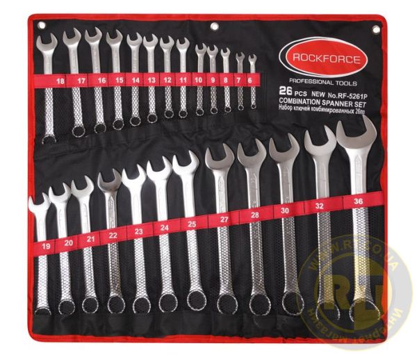 Набор ключей комбинированных 26 предметов(6-25, 27, 28, 30, 32, 36мм),на полотне ROCKFORCE RF-5261P(NEW) PARTNER RF-5261P36