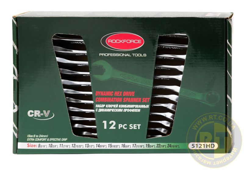 Код товара: 18313, Состав: Набор ключей RF-5121HD комбинированных с динамическим профилем,12пр. (8, 10-17, 19, 22, 24мм),в пластиковом держателе ROCKFORCE /1