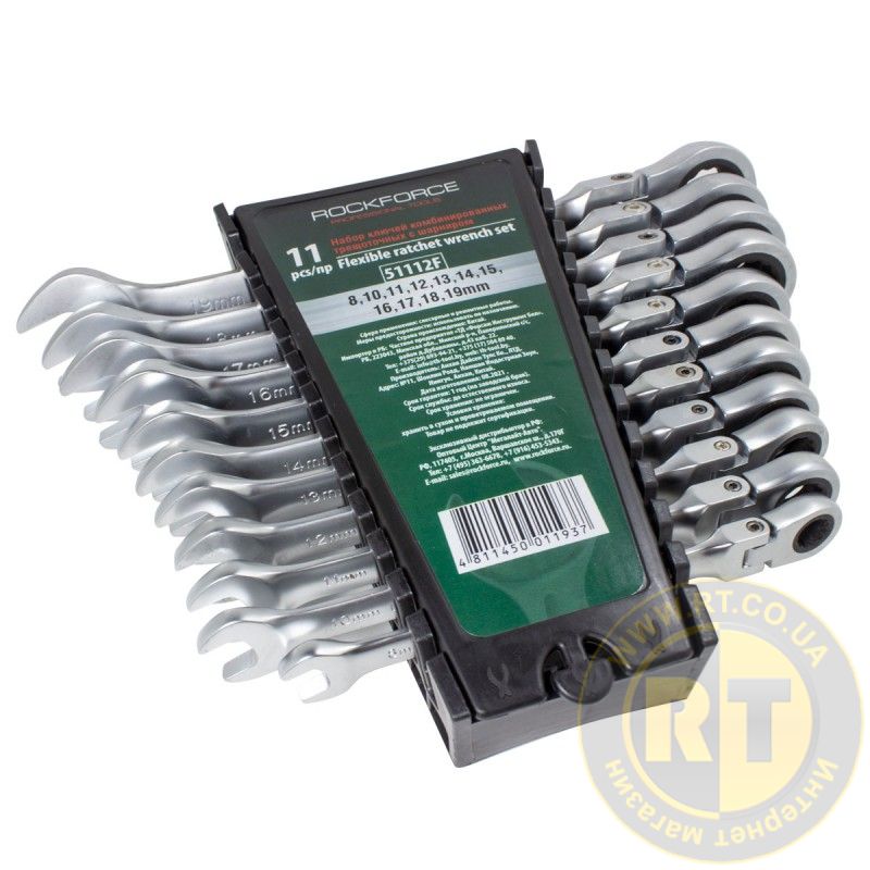 Набор ключей комбинированных трещоточных с шарниром, 11 предметов (8,10,11,12,13,14,15,16,17,18,19мм)в пластиковом держателе ROCKFORCE PATRON RF-51112F