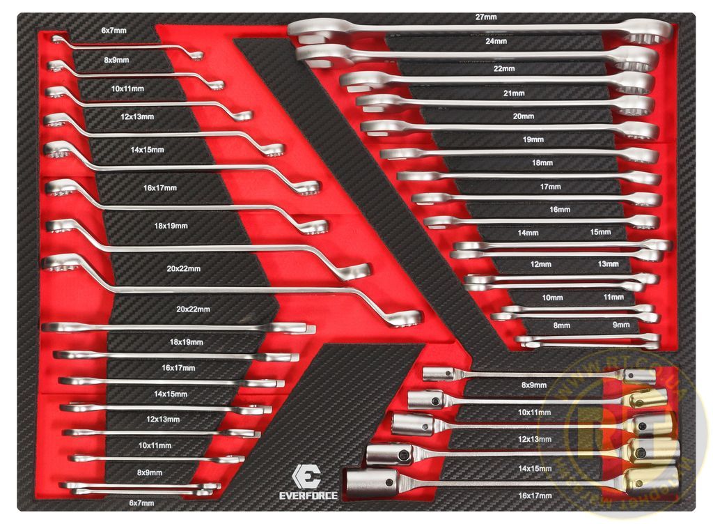 Набор ключей комбинированный 38 предметов(торцовые шарнирные:8-17мм,рожковые:6-22мм,накидные:6-22мм,комбинированные:8-27мм),в ложементе EVERFORCE FORSAGE EF-21056