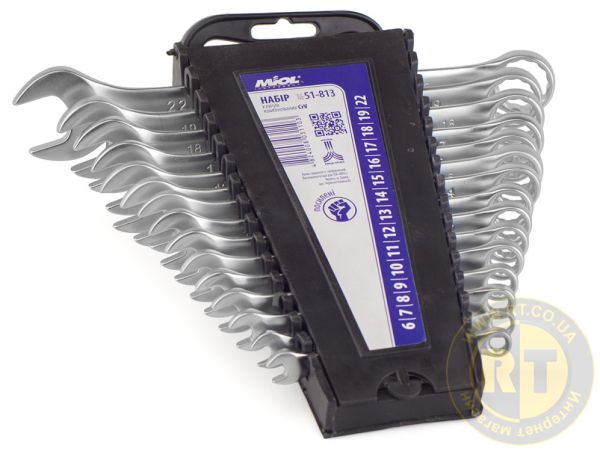 Набор рожково-накидных ключей (15 шт., 6–22 мм, CrV) Miol 51-813