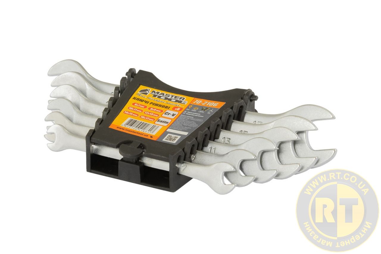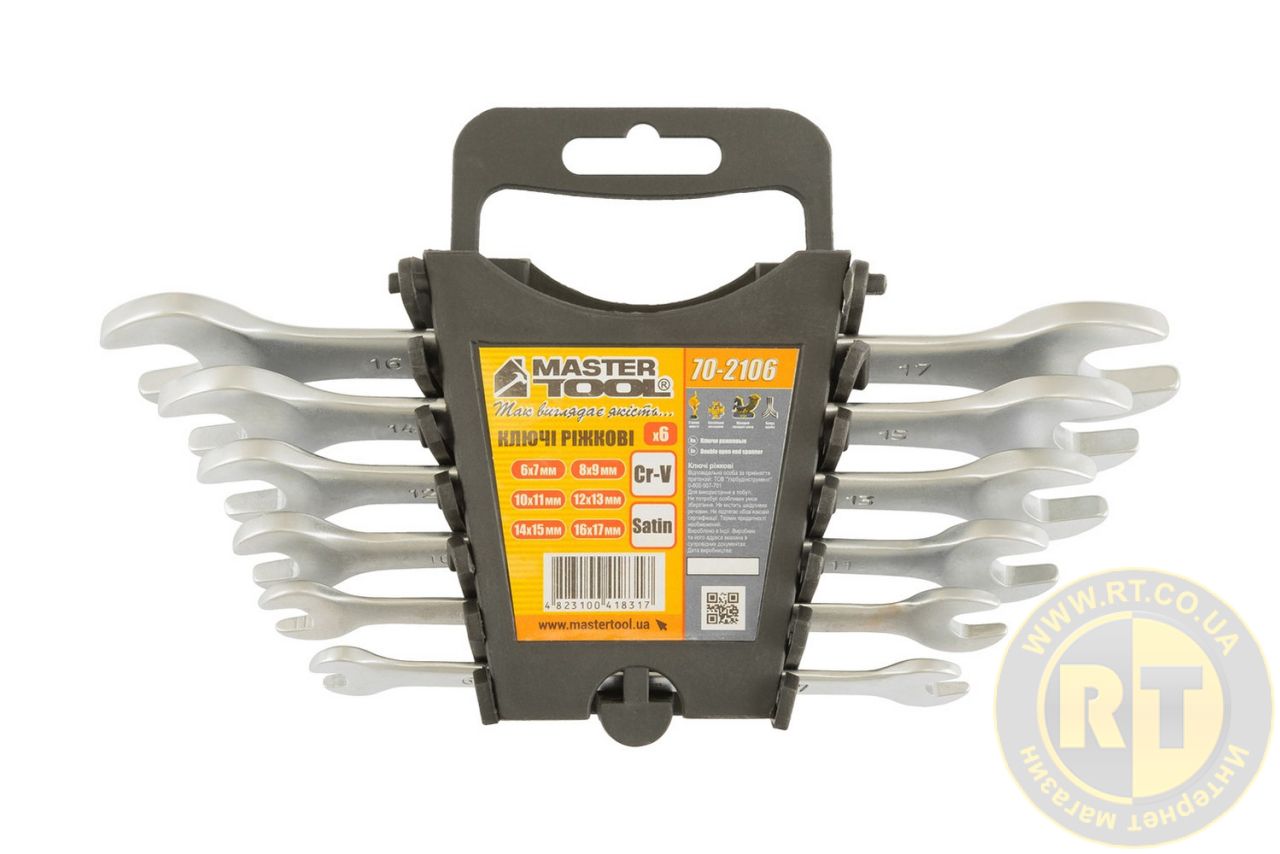 Ключи рожковые набор 6 шт (6-17 мм) CrV SATIN FINISH DIN3110 MASTERTOOL 70-2106